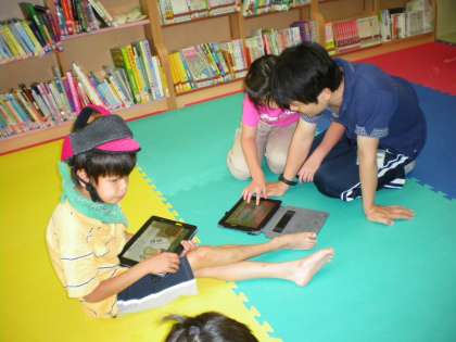 昼休みの図書館利用時間は,中学部・高等部が1時までで,小学部は1時15分までです。1時を過ぎると,ゆったりした空間で,iPadを使ったり,先生に本を読んでもらったり,一番リラックスしたポーズで本を読んだりして,ほっこりしたひと時を過ごしています。