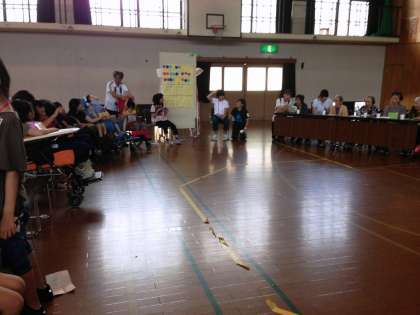 箱倒しゲームでは、お互いに「せーのっ」と声を掛け合い、大きな球に悪戦苦闘しつつ協力することで、楽しい雰囲気に包まれました。