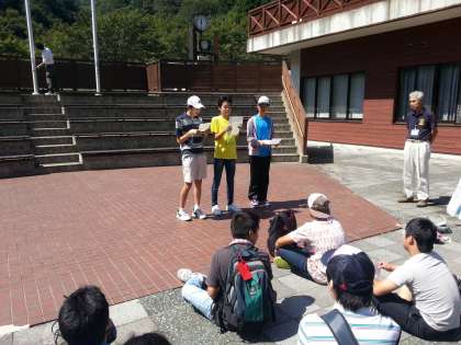 10:15にスクールバスで学校を出発し,11:15にアクトパル宇治に到着しました。本館横の集いの広場で入所式をしています。