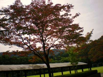 グランド横の花みずきの葉がいっきに色づいてきました。