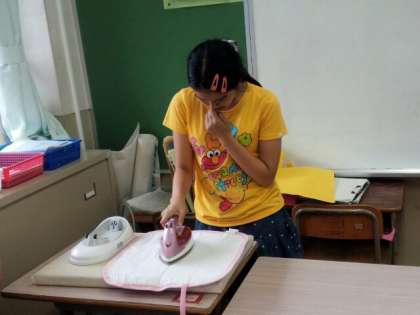 高等部2年生の生活委員会では,アイロンがけの練習をしていました。