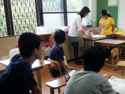 夏休み前の学習では,生活学習室のすべての座布団を天日干しし,カバーを洗ってアイロンがけしてくれました。