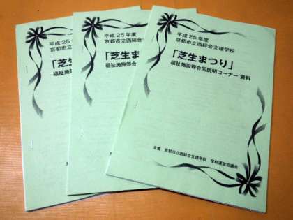 10月26日(土)の「芝生まつり」で,「福祉施設等合同説明コーナー」を体育館で開催します。今年度も福祉施設の概要をまとめた資料を作成しました。福祉施設の方にご協力いただき,合計27施設の情報を54頁にわたって掲載しています。