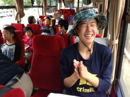 わくわくしながらスクールバスに乗車しました。