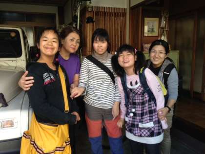 (下) 着付けをしてもらった松山染工のお母さんと記念撮影!とてもよくしていただき,いい思い出が作れました。感謝感謝です!
