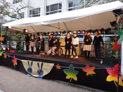 大ぜいの人を前にして,少し緊張した面持ちでしたが,今までの交流ですっかり打ち解けているサークルの皆さんに緊張をほぐしてもらいながら,「ミッキーマウスマーチ」「世界に一つだけの花」「Day dream Believer」の3曲を披露しました。