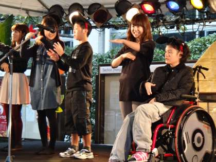 11月4日(月)に,中学部の居住地域(四条)ユニットが京都外国語大学の外大祭で,以前から交流を続けている手話サークル(soup)の皆さんと一緒にステージに立ち手話歌を披露しました。
