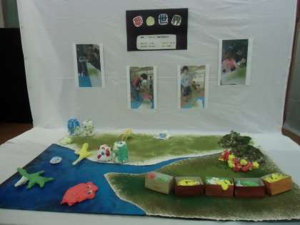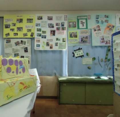小学部の作品です!!じっくり見てください。制作時の様子がよくわかるように写真も掲示されています。微笑ましいです。