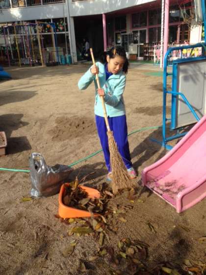 得意なことを活かして,教室の壁面装飾の輪つなぎ作りや,寒いけど頑張って,落ち葉を集める清掃活動にも取り組みました。ゴミ袋二つ分も集めました。