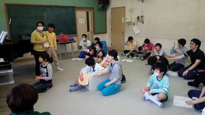 中学部1年生は,3階の音楽室で音楽活動をしました。