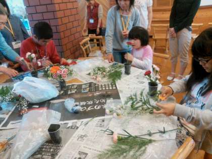 フラワーアレンジメントで楽しく和やかに活動し,初めての挑戦でしたが,上手にアレンジメントできました。