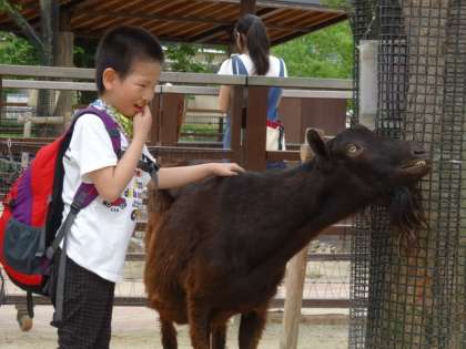 おとぎの国では,やぎを触りました。
