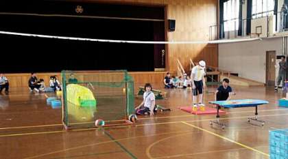 本日,小学部は,午前中に体育館で学部単位の「体育の部」の練習をしました。本番ながらの雰囲気で,子ども達は真剣に取り組んでいました。