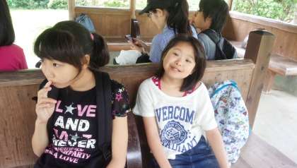 (上)亀山公園につきました。風が気持ち良いです。