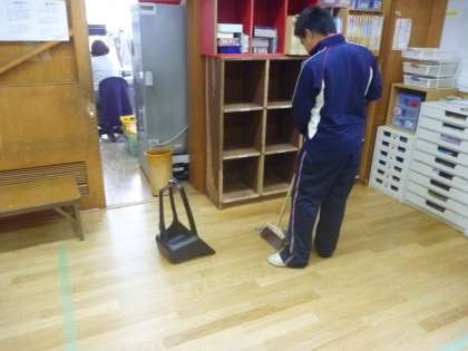 靴箱を拭いたり,廊下を掃いたり,窓を拭いたりしました。