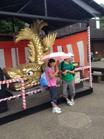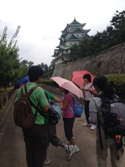 Dグループは,レストランで昼食の後,スケジュール表を見ながら,無事名古屋城到着。大成功!