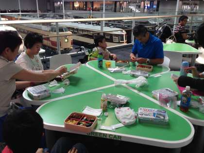 本物の電車がたくさん展示してあって迫力満点です。お昼は電車を見下ろしながら駅弁を食べました。