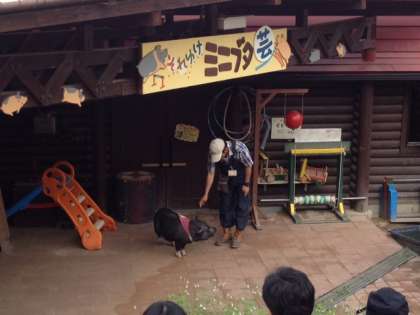 ウィンナー作りの次は,ミニブタ芸観賞です。