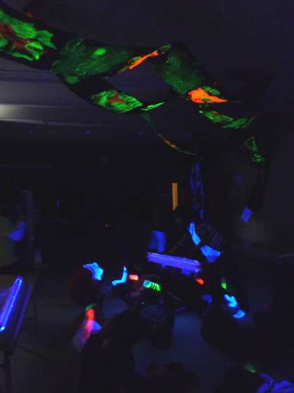 最後に造形グループが作った『天の川』にブラックライトを照らすと、きれいに光って 浮かびあがりました!!呪文をかけて作った不思議な水も光って、とてもきれいでした。