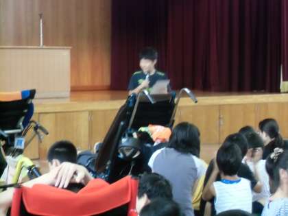 その後,小学部・中学部・高等部の児童生徒が夏休みの思い出を話してくれました。ペアの招待券が当たったことや夏休み中の部活の頑張り,家族旅行のことなど,素敵な夏休みの思い出が伝わってきました。