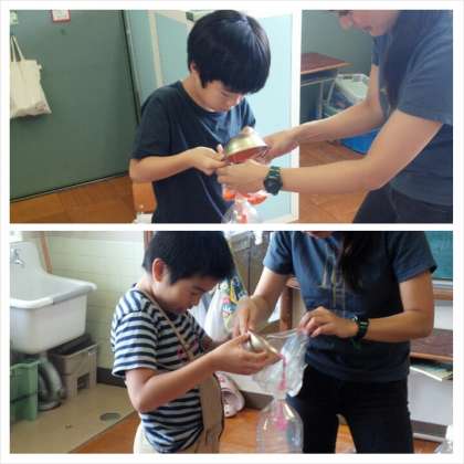 どの児童も,ペットボトルに絵の具を流す時に,不思議そうに覗き込んでいました。