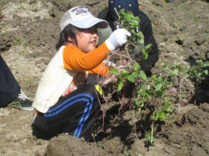 今日,小学部三年生と4年生,5年生の数名で,楽洛農園へいも掘りに行ってきました。