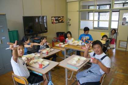 どの生徒も,初めての教室での交流にも関わらず,給食を完食し,交流先の担任の先生からの質問に,笑顔で答えていました。