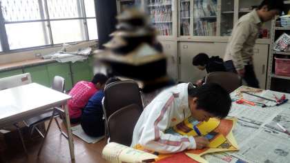 美術室前を通っていると,かなりリアルな制作物が目を引きました。リアルな作品作りに子どもたちも真剣な表情で取り組んでいました。思わず写真を撮影して「ホームページで紹介してもいい?」と尋ねると,作品は少しぼかしてくださいとのことです。