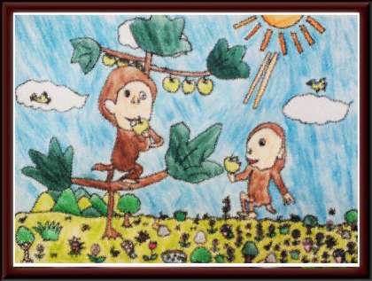 小学部の児童が,「あそびのおうさまずかん いきもの・くらし」の本を見て描いた作品です。