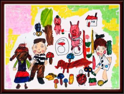 中学部の生徒が,英語の歌の本を見ながら,気に入ったイラストを組み合わせて描いたそうです。