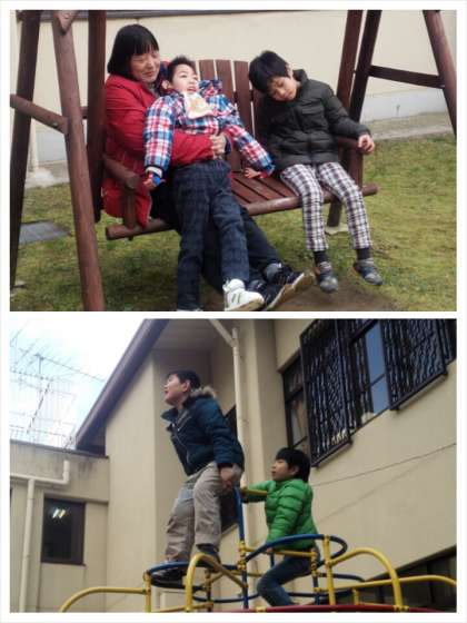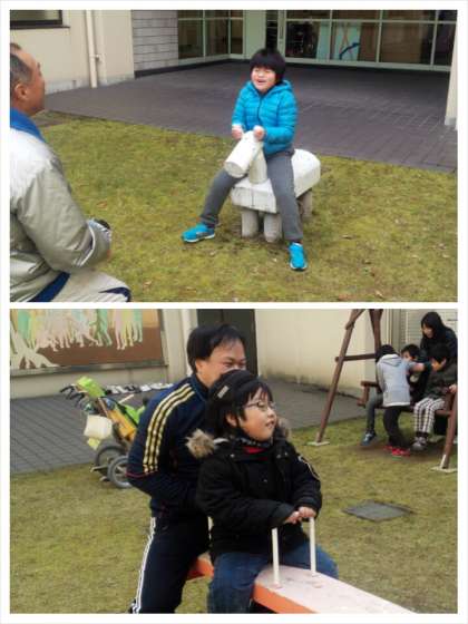 寒さもすこしやわらぎ,気持ちよさそうに遊具で遊んでいました。おやじの会で作っていただいた「ブランコ」も大活躍です。