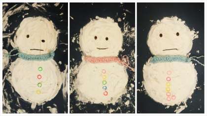 小学部3年生は,ゆきだるまの作品を作りました。先生が描いた下地の円を意識しながら,白いホイップ粘土を手のひらで思い思いに伸ばしました。立体的で,とてもかわいいゆきだるまができました。(まだ,完成ではないそうです)