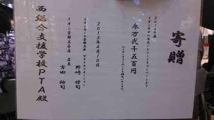 『昨年度は,PTAの「イオン 幸せの黄色いレシートキャンペーン」にご協力いただきましてありがとうございました。