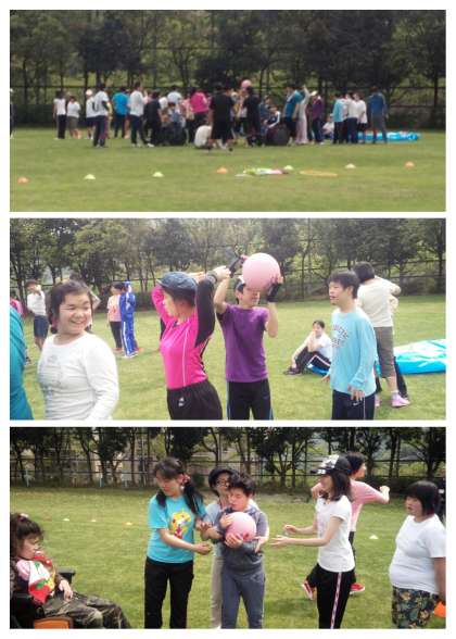 徒競走をしたり,ボール回しゲームをしたり,大盛り上がりです,