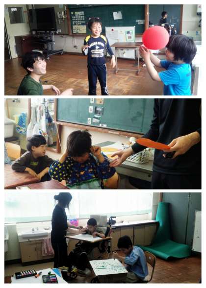 各クラスごとに,教室で風船遊びや創作活動をしたり,校舎のまわりで自転車に乗る練習をしていました。