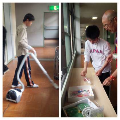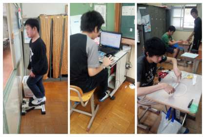 みんなで学校祭体育の部の応援グッズや準備運動グッズを作っているクラスや,個々に教室で毎日のトレーニングしている人,体育の部の曲を作っている人,掃除をしている人などがいました。