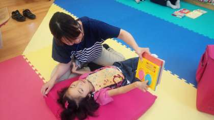 面白そうな本を自分から出したり,音の出る絵本のボタンを押していました。