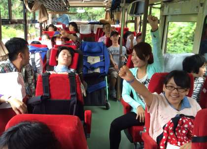 学校からスクールバスでトロッコ亀岡駅に向かっています!