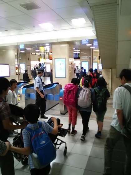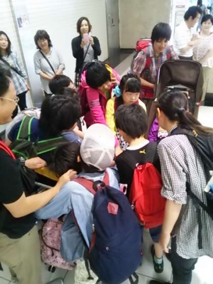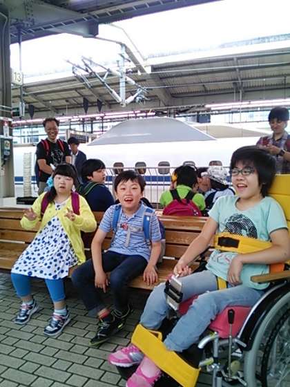 出発式をして,京都駅構内に入りました。駅のホームでわくわくしながら新幹線をまっています。