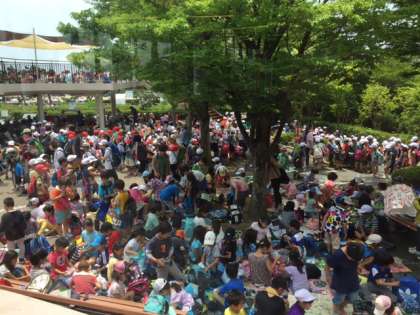 私たちは、優雅にレストランで昼食です。遠足の人たちは・・・。とにかくすごく混んでいますが、バッチリ楽しんでます。