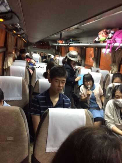 さっそくバスレク開始! イントロ当てクイズで盛り上がっています。