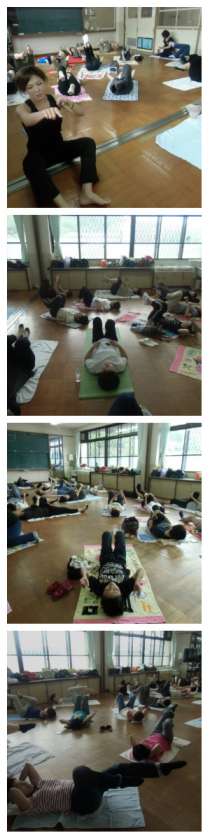 本日,西総合支援学校3回の多目的室で,本校PTA 教養委員主催の腰痛・肩こり改善に役立つプログラム,「ピラティス」を行いました。