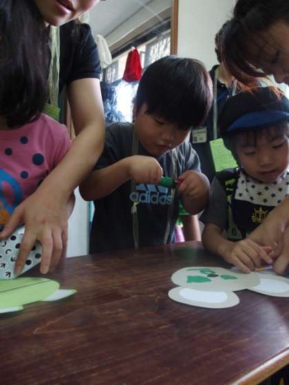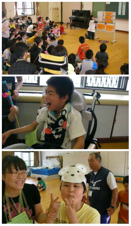 小学部「夏まつり」では,「お面づくり」・「七夕夜空(音光)」・「もぐらたたき」・「カーリング」・「魚釣り」などのブースを子どもたちがまわりました。