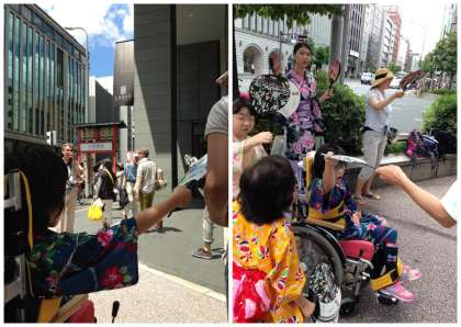 道行く人々に,うちわと爽やかな笑顔で涼を届けることができました。