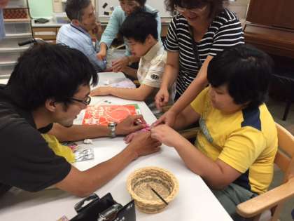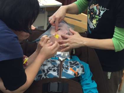 療護園の方の顔に星や魚のペインティングをしたり,腕に色を塗ったりしました。