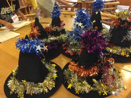 9月24日(木)に川岡小学校で,第6回目のわくわくクラブを開催しました。この日は,10月31日のハロウィンにちなんでハロウィン風の帽子を作りました。みんな自分で考えたデザインで作りました。どうです?素敵でしょ!