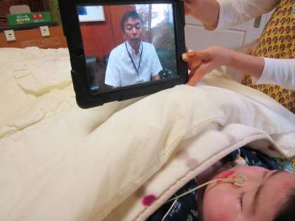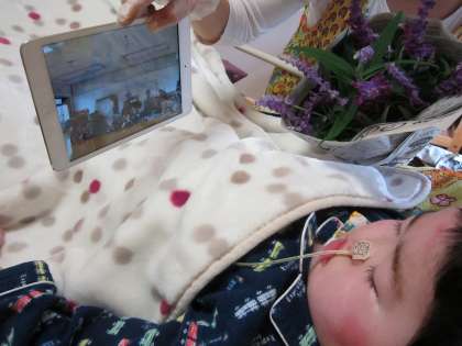 また,iPadのfacetimeを利用して,学校と自宅とで通信による学習にも取り組みました。学年の友達や先生の笑顔や賑やかな声が身近に感じられ,画面に向かって先生と一緒に手を振ったりしながらとても有意義な時間を過ごすことが出来ました。