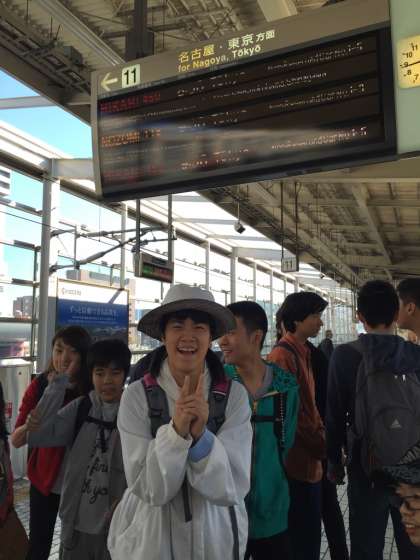 ホームでも,新幹線の中でも,話がはずみます。