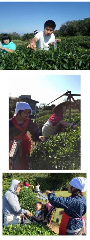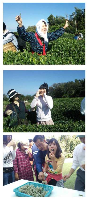 写真では見えないかもしれませんが,富士山をバックにお茶摘みしました。