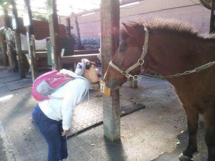 そんな脇で馬と会話しようとしている生徒もいました(笑)